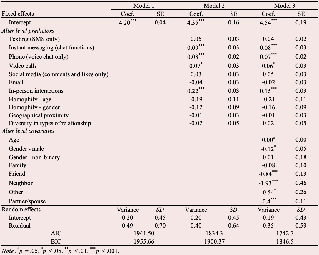 All the alter-level predictors and alter-level covariates were entered simultaneously (Model 3 in the above table).